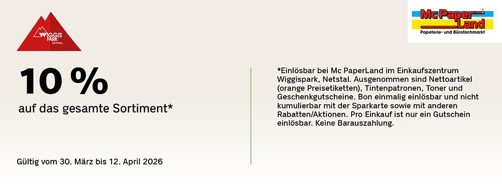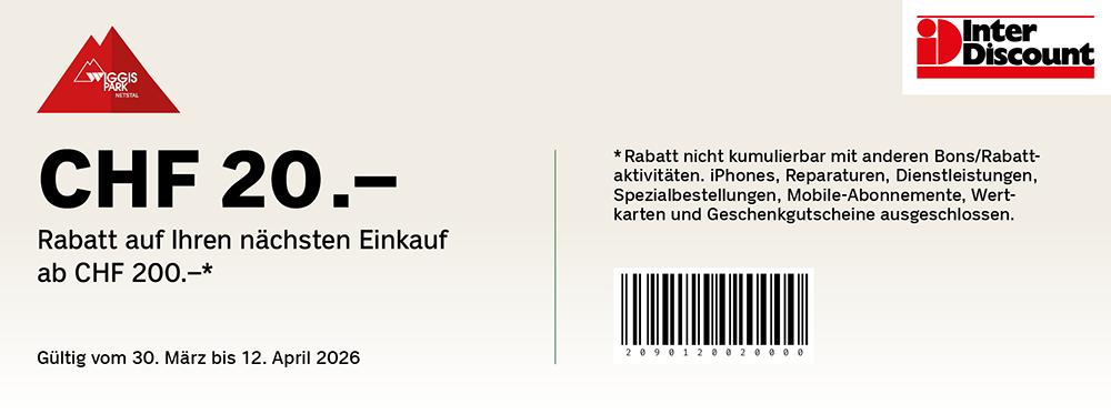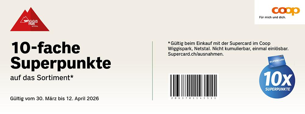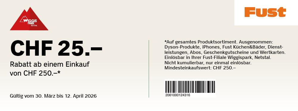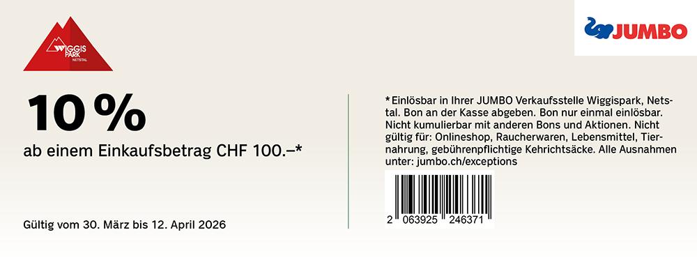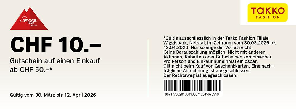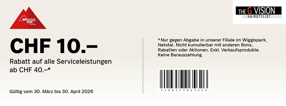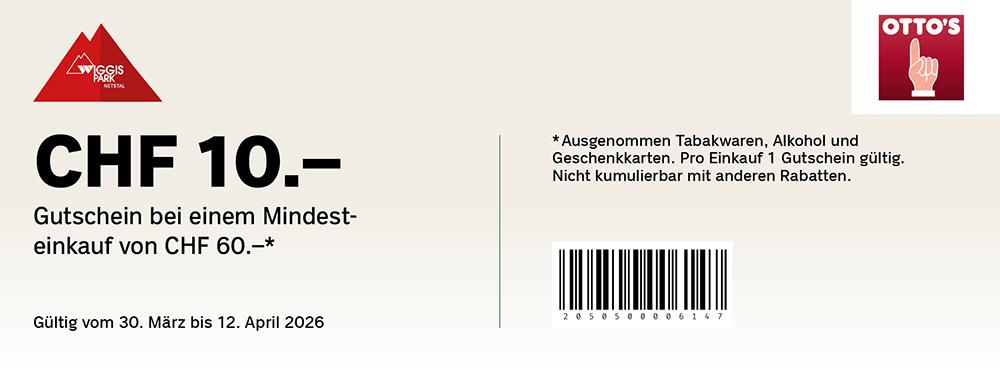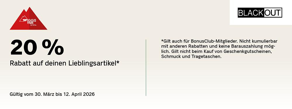 Bon im Wiggispark im jeweiligen Geschäft vorweisen und von attraktiven Rabatten profitieren.